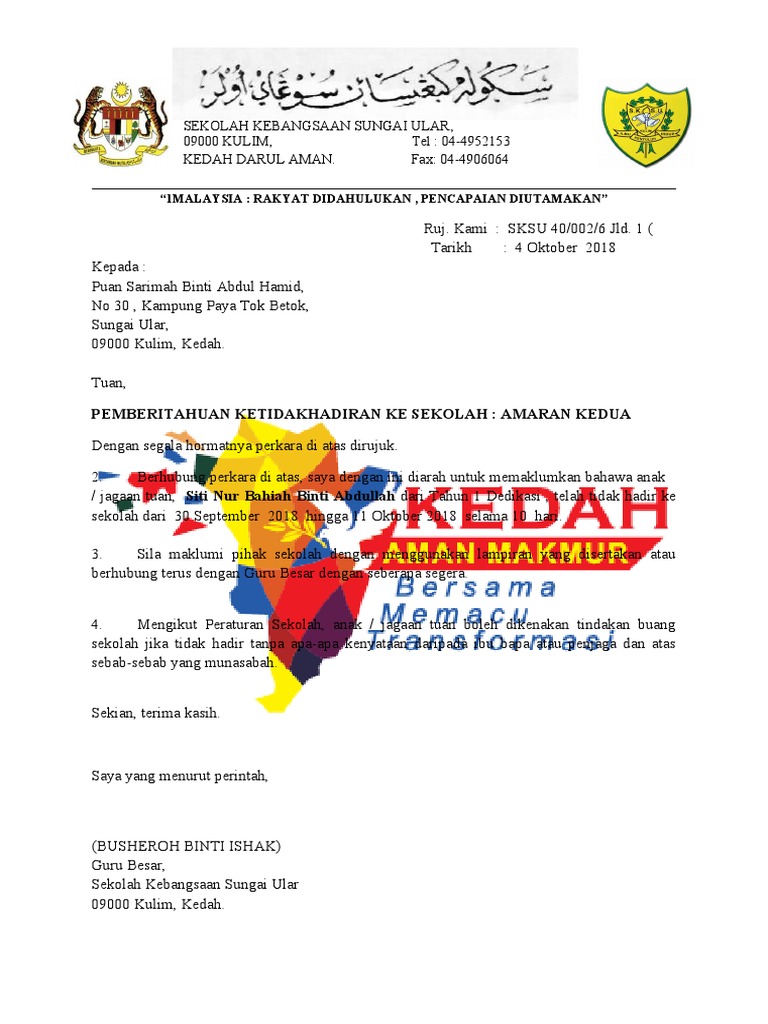 Surat Amaran Tidak Hadir Ke Sekolah Doc