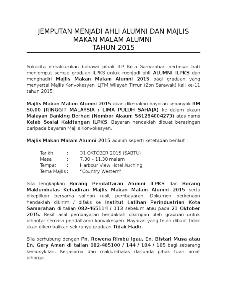 Surat Jemputan Majlis Makan Malam Amal Alumni Abs Temerloh Facebook