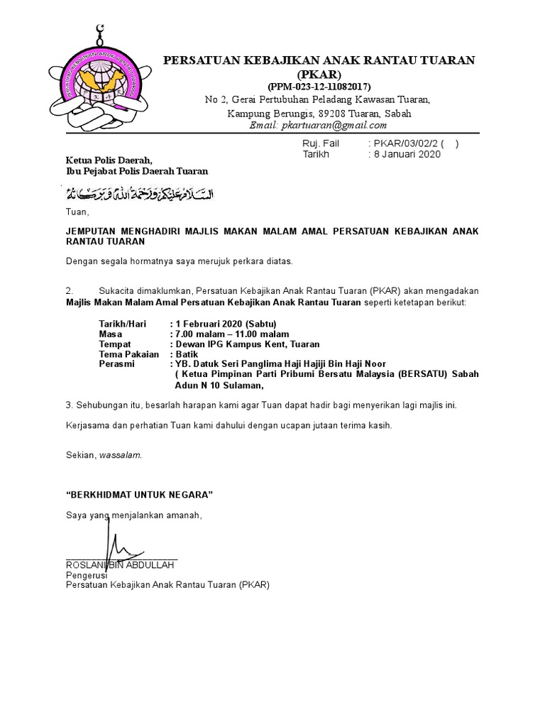 Surat Makluman Dan Jemputan Majlis Makan Malam Amal Smk Puchong Utama 1