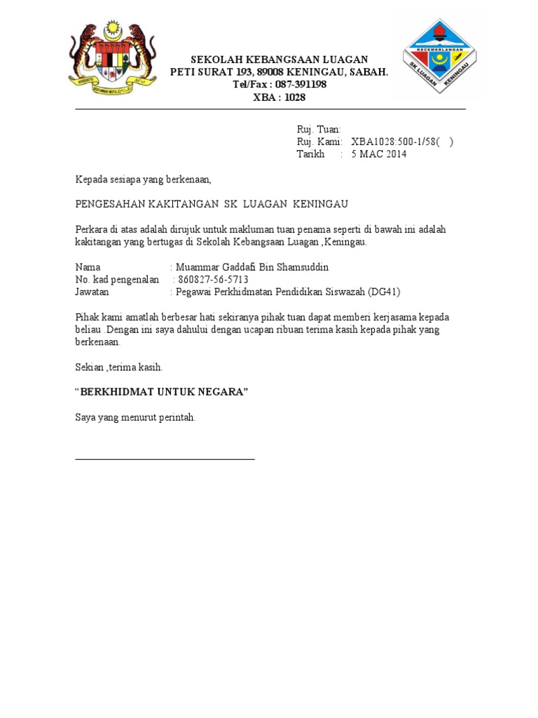 Format Surat Rasmi Kepada Sesiapa Yang Berkenaan Surat Rasmi P