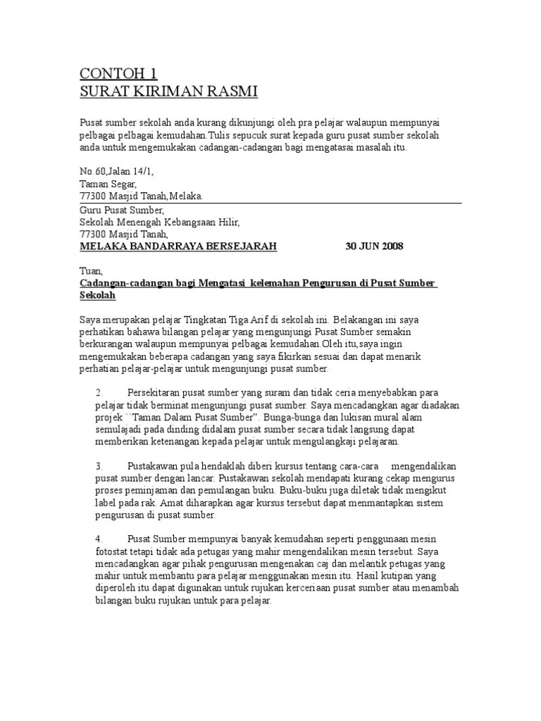 Contoh Surat Rasmi Bahasa Inggeris Spm Surat Rasmi E