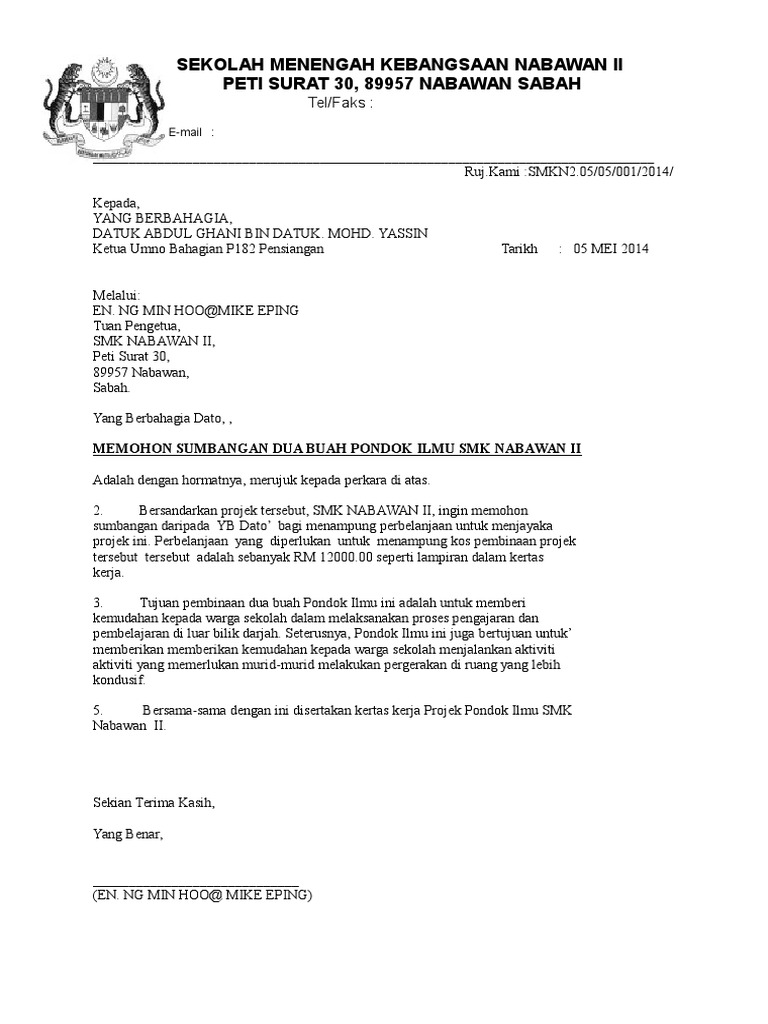 Contoh Surat Rasmi Memohon Sumbangan Wang Surat Rasmi 1