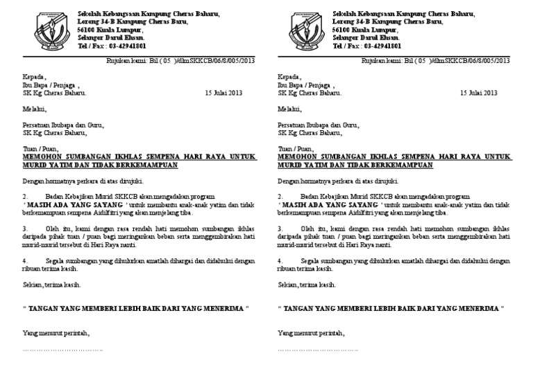 Surat Mohon Sumbangan Sukan Sekolah Doc Document