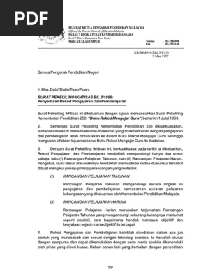 Pekeliling Ikhtisas Penyediaan Rekod Pengajaran Dan Pembelajaran Pdf Document