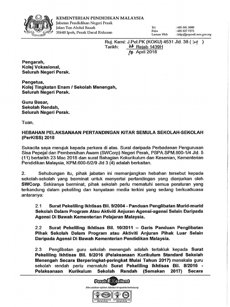 Pekeliling Panduan Keselamatan Semasa Pengajaran Pendidikan Jasmani Dan Kesihatan Serta Kegiatan Kokurikulum Pendidik2u