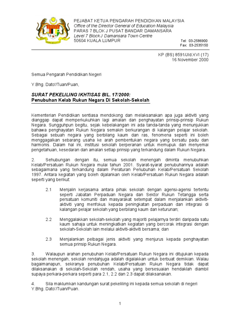 Spi Bil 17 2000 Pekeliling Penubuhan Kelab Rukun Negara Di Sekolah Sekolah Pekeliling Terbaru Kerajaan