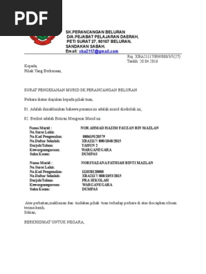 Download 6 Contoh Surat Rasmi Tidak Hadir Sekolah Kuliah Melur Net