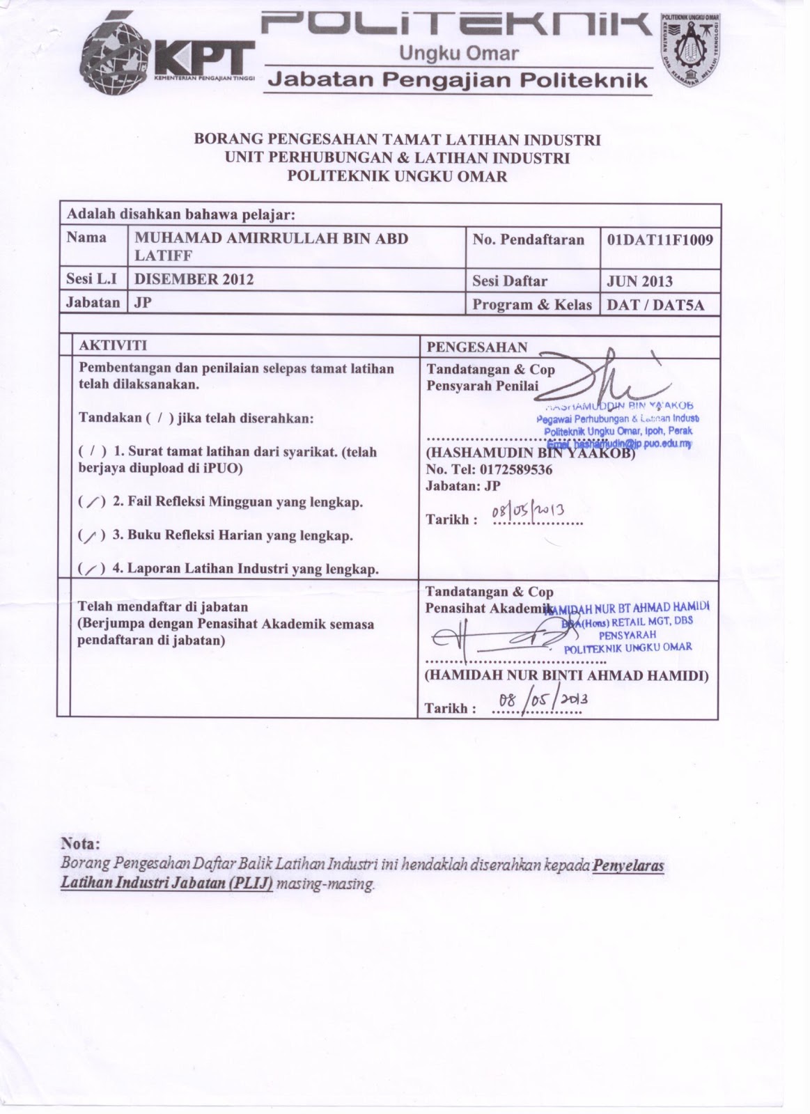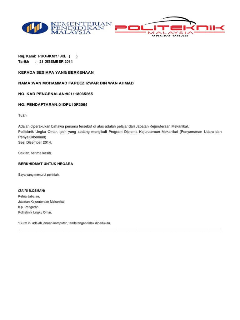 Surat Pengesahan Tamat Pengajian Politeknik Ungku Omar