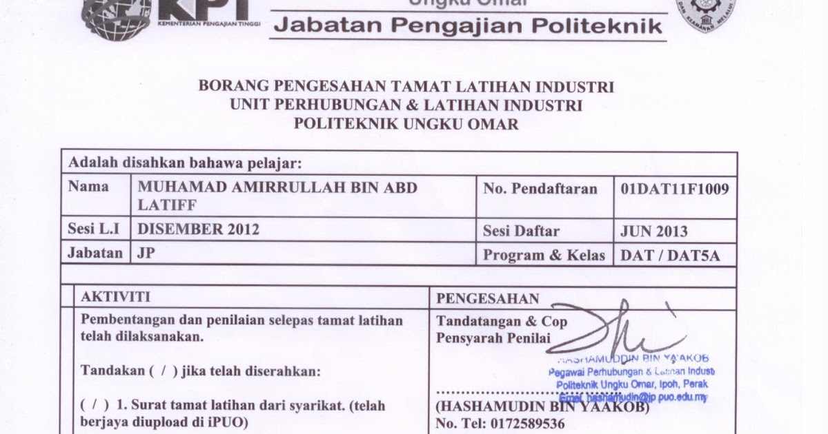 Contoh Surat Pengesahan Tamat Latihan Industri