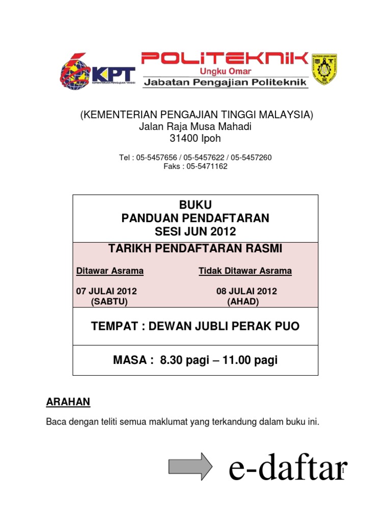 Politeknik Ungku Omar Kementerian Pelajar Notis Panggil Balik Pelajar Latihan Industri Sesi Latihan Disember 201 6 Slide Pembentangan Borang Pengesahan Tamat Latihan Cetakan