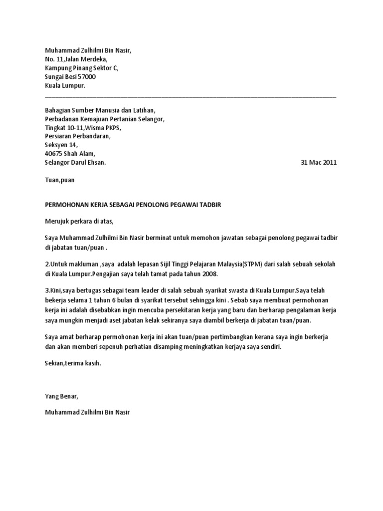 Contoh Surat Permohonan Kerja Kosong Mudah Dan Terbaik
