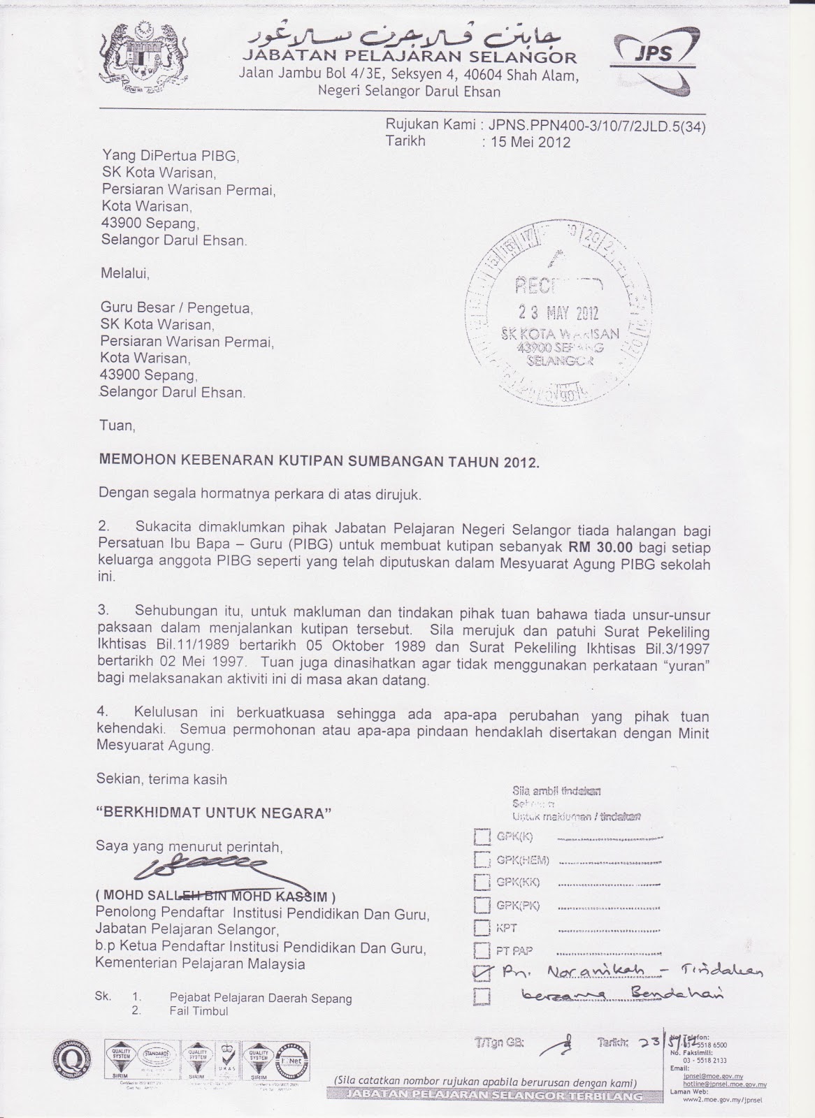 1 Surat Kelulusan Kutipan Bayaran Sumbangan Pibg 2016 Pibg Sttj 2018