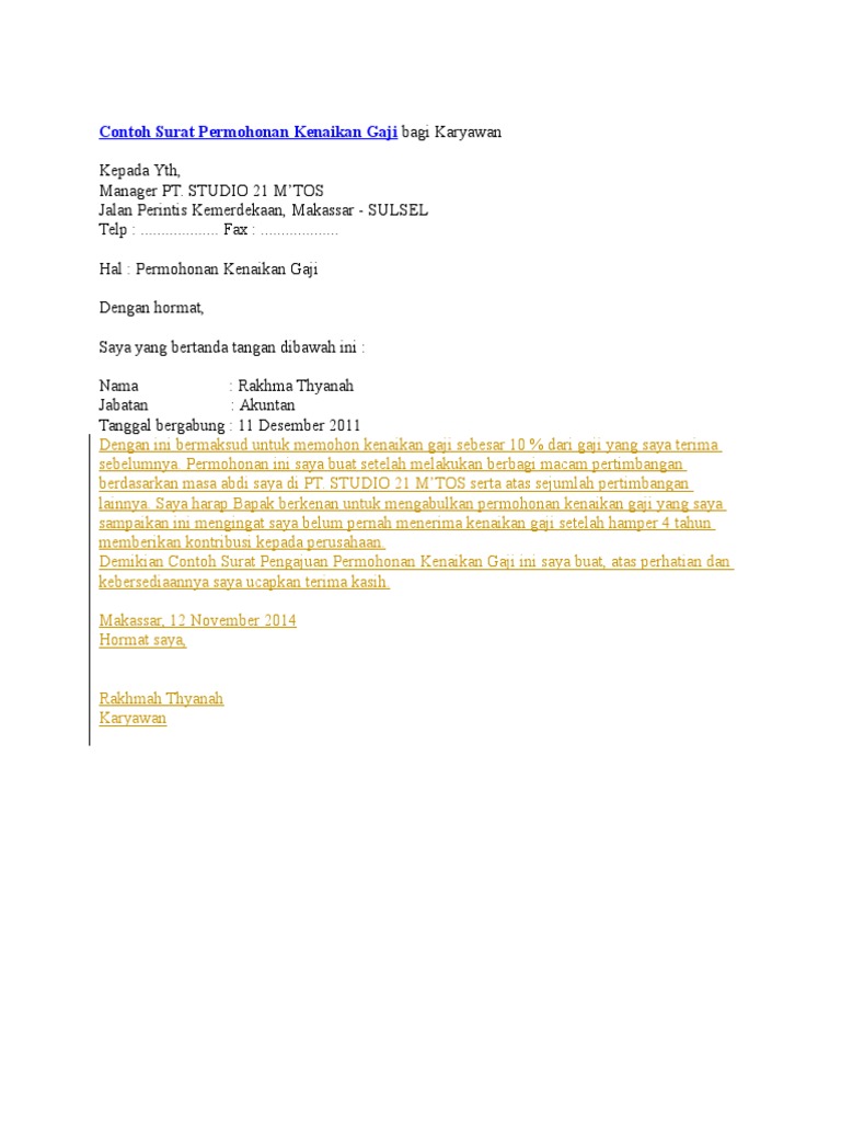 Contoh Surat Rasmi Permohonan Kenaikan Gaji Peatix