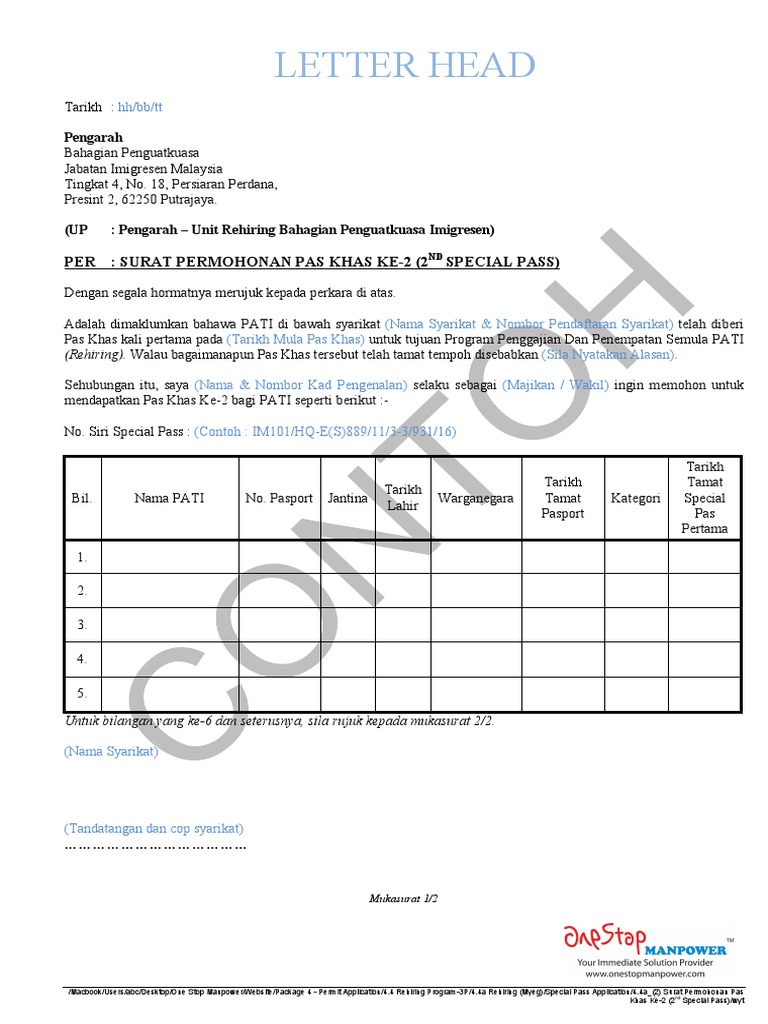Letter Head Per Surat Permohonan Pas Khas Ke 2 2 Special Pass