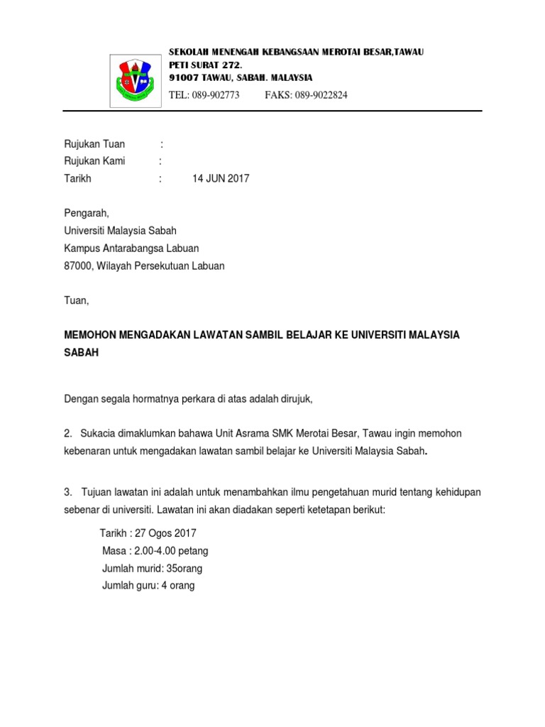 Contoh Surat Rasmi Lawatan Sambil Belajar Ke Universiti Surat Rasmi G