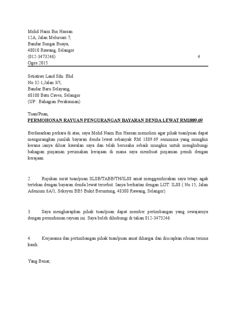 Contoh Surat Rayuan Pengurangan Penalti Lhdn Persoalan V Cute766
