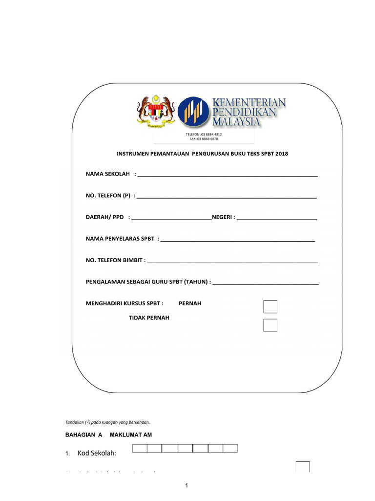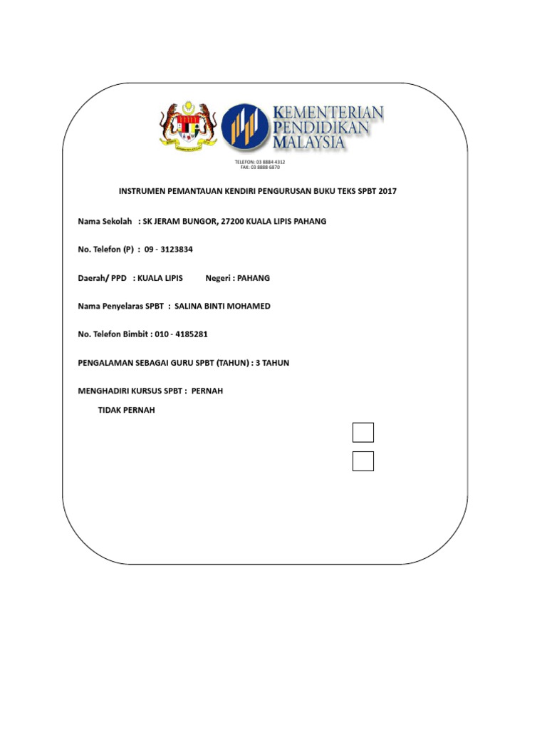 Instrumen Pemantauan Pengurusan Buku Teks Spbt 2018