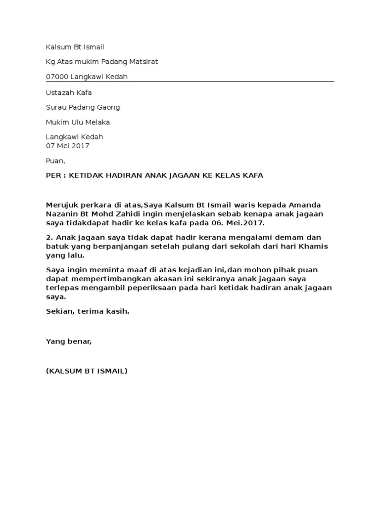 Surat Tidak Hadir Ke Kafa