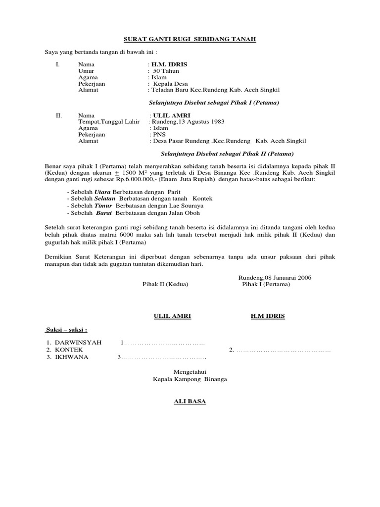 Surat Pernyataan Tidak Menuntut Ganti Rugi Pengadaan Tanah Pdf Document