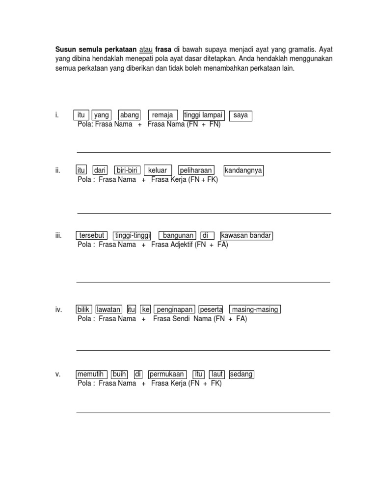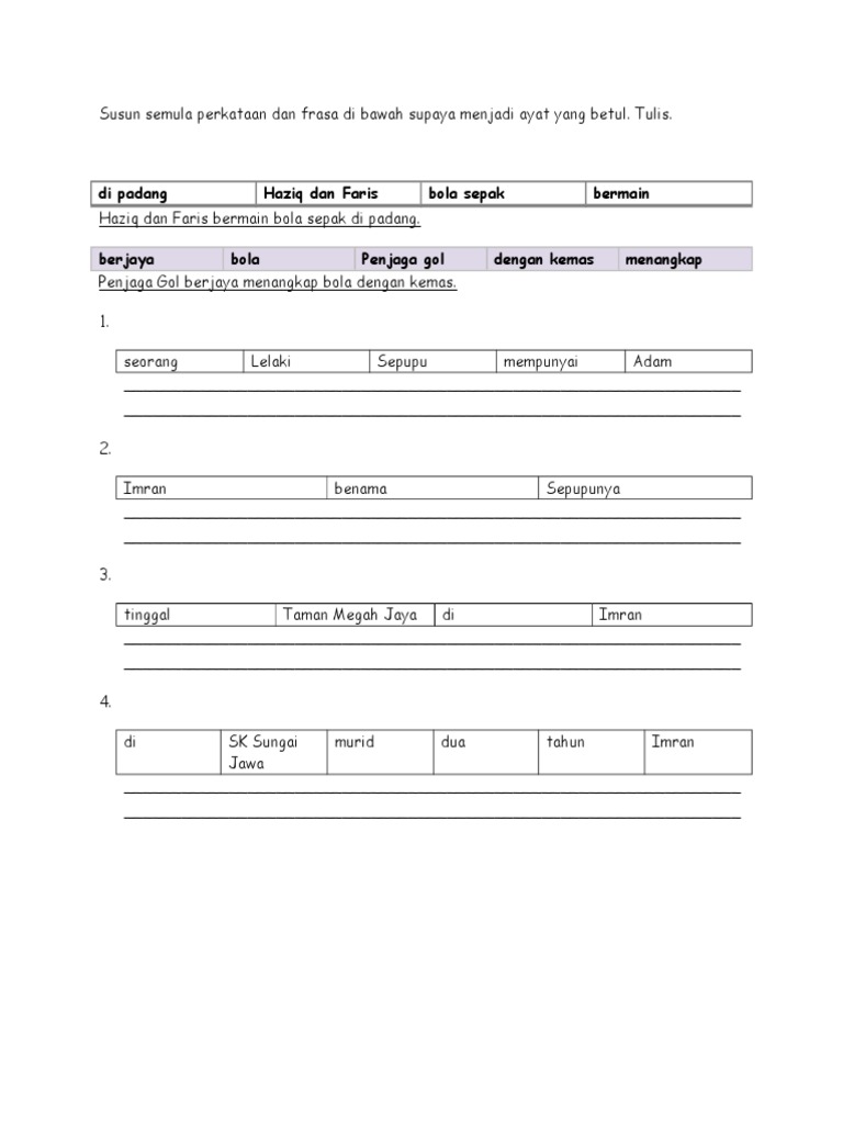 Susun Semula Perkataan Dan Frasa Di Bawah Supaya Menjadi Ayat Yang Betul