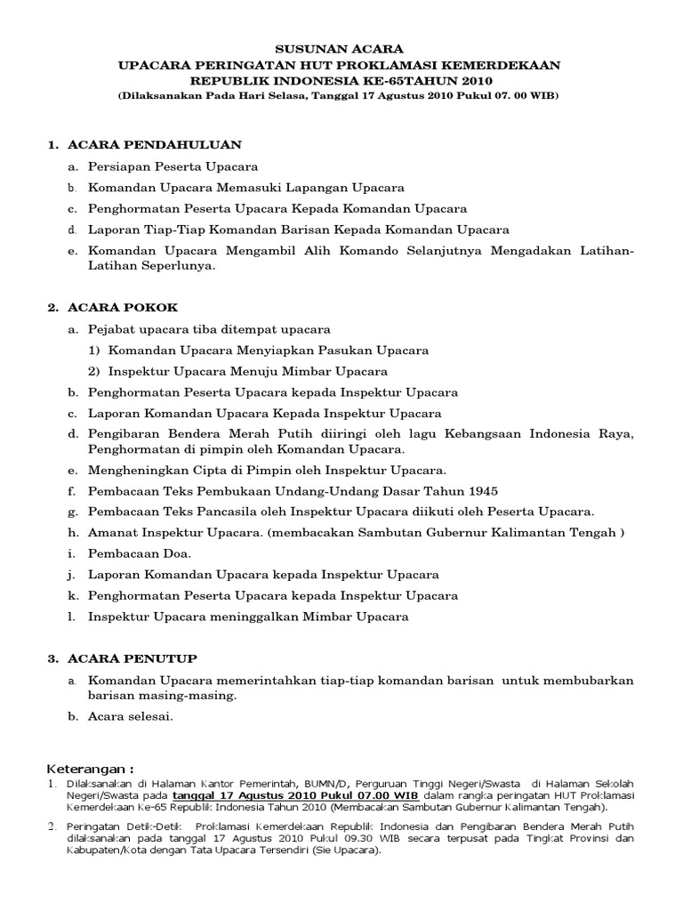 Contoh Susunan Acara 17 Agustus Omndo Com