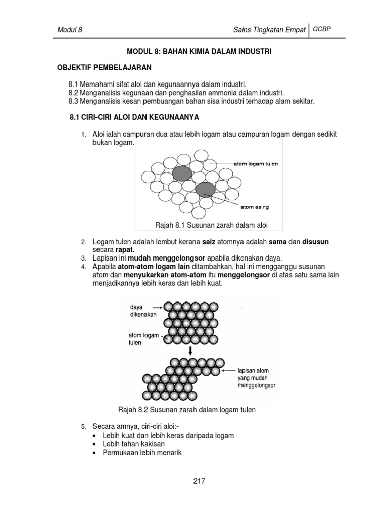 Bab 8 Bahan Kimia Dalam Perindustrian Doc Bab 8 Bahan Kimia Dalam Perindustrian 8 1 Sifat Aloi Dan Penggunaannya Pengaloian Ialah Proses Pencampuran Course Hero