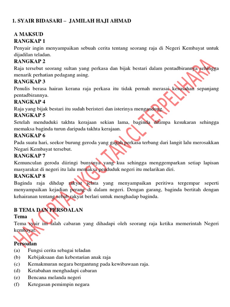 Komsas Tingkatan 4 Syair Bidasari Maksud Syair Dan Persoalan