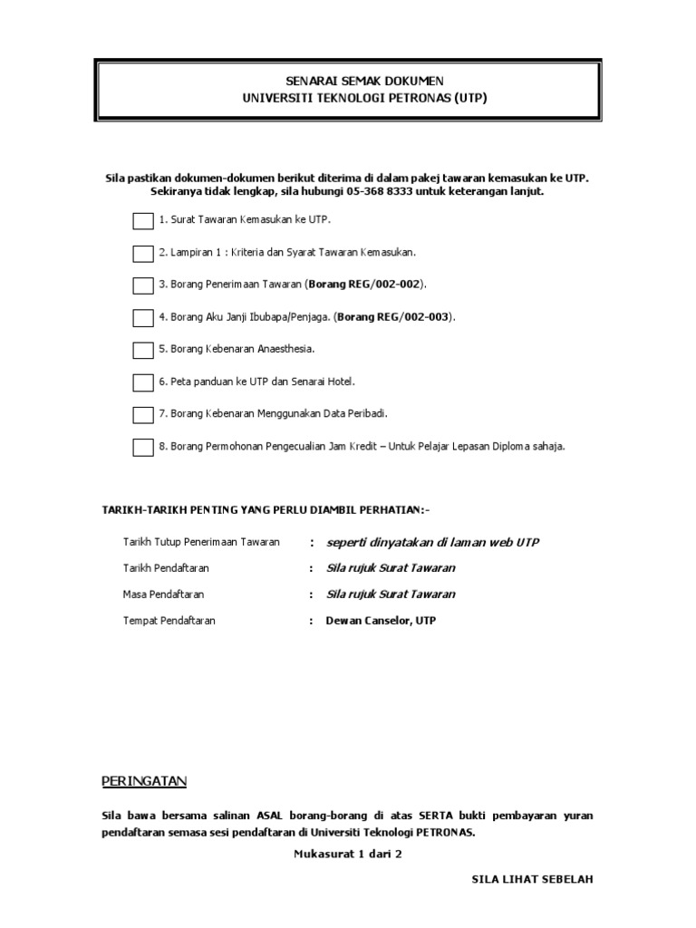Syarat Kemasukan Ke Universiti Teknologi Petronas Surat Rasmi Z