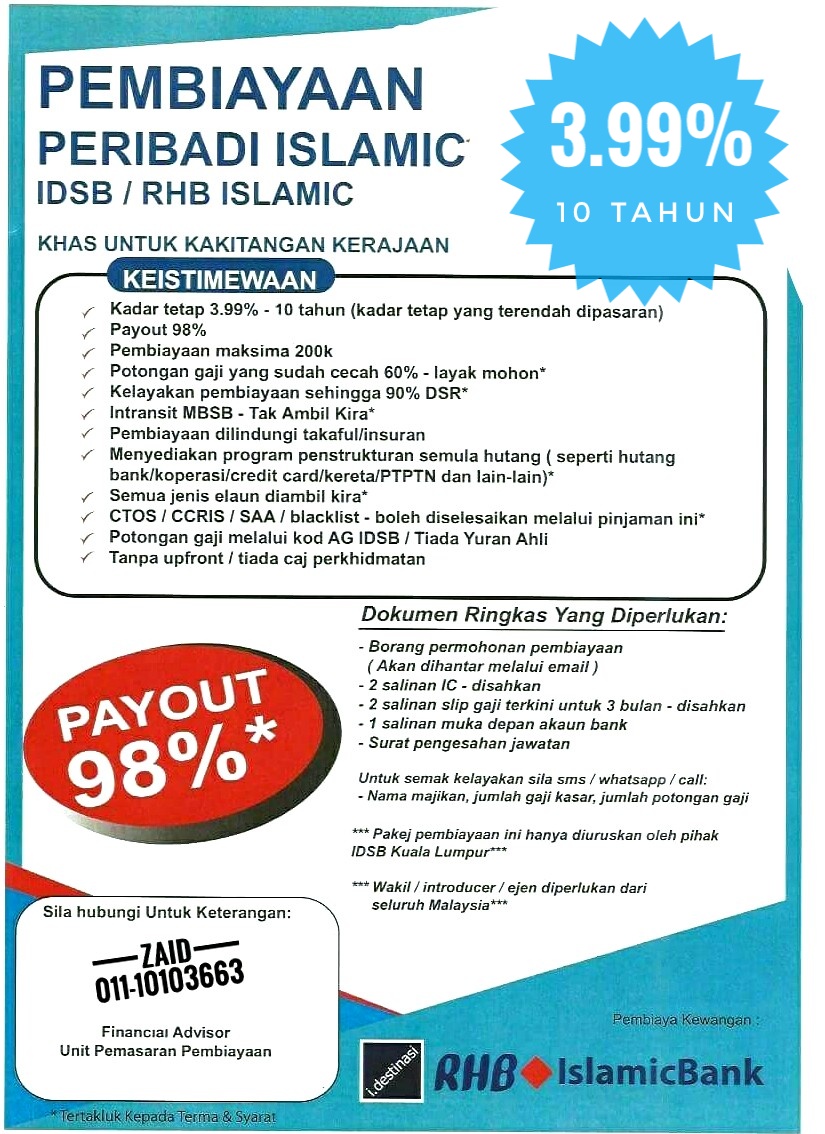 Pinjaman peribadi easy rhb ialah skim pinjaman peribadi yang cepat dan mudah prosesnya. Jika semua syarat lengkap maka itulah hakikatnya. Rhb menawarkan proses transaksi yang paling cepat dan paling lancar ketika pelanggan datang untuk memohon pinjaman peribadi. Note that the maximum financing tenure for income below rm10 000 will be 5 years.