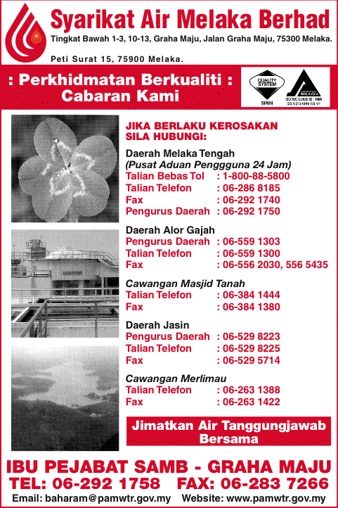 Samb Makluman Notis Gangguan Bekalan Air Berjadual Di Kawasan Jasin Melaka Pengguna Diminta Menyimpan Bekalan Air Yang Secukupnya Segala Kesulitan Yang Dihadapi Amat Dikesali Sekian Terima Kasih Facebook