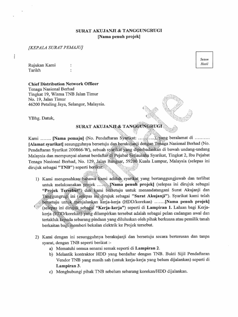 30 Tnb Surat Akujanji Tanggungrugi Dan Arahan Mula Kerja Hdd Template