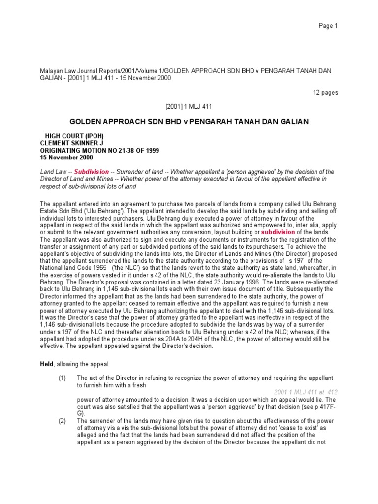 Golden Approach Sdn Bhd V Pengarah Tanah Dan Estoppel Power Of Attorney