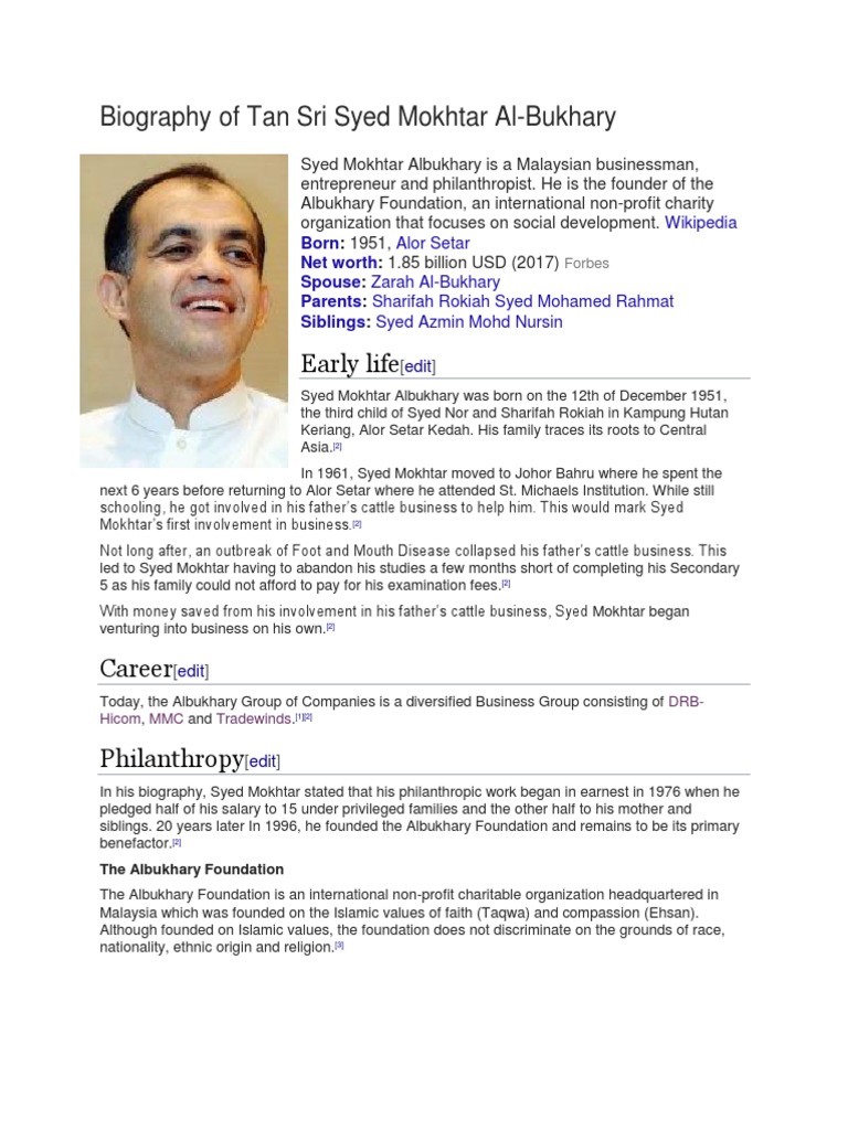 Biography Of Tan Sri Syed Mokhtar Al Malaysia Religion And Belief