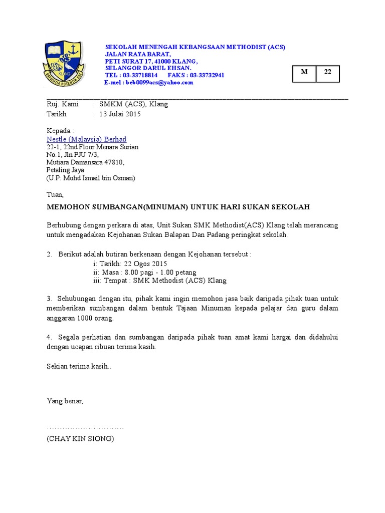 Contoh Surat Rasmi Memohon Sumbangan Wang Surat Rasmi 1