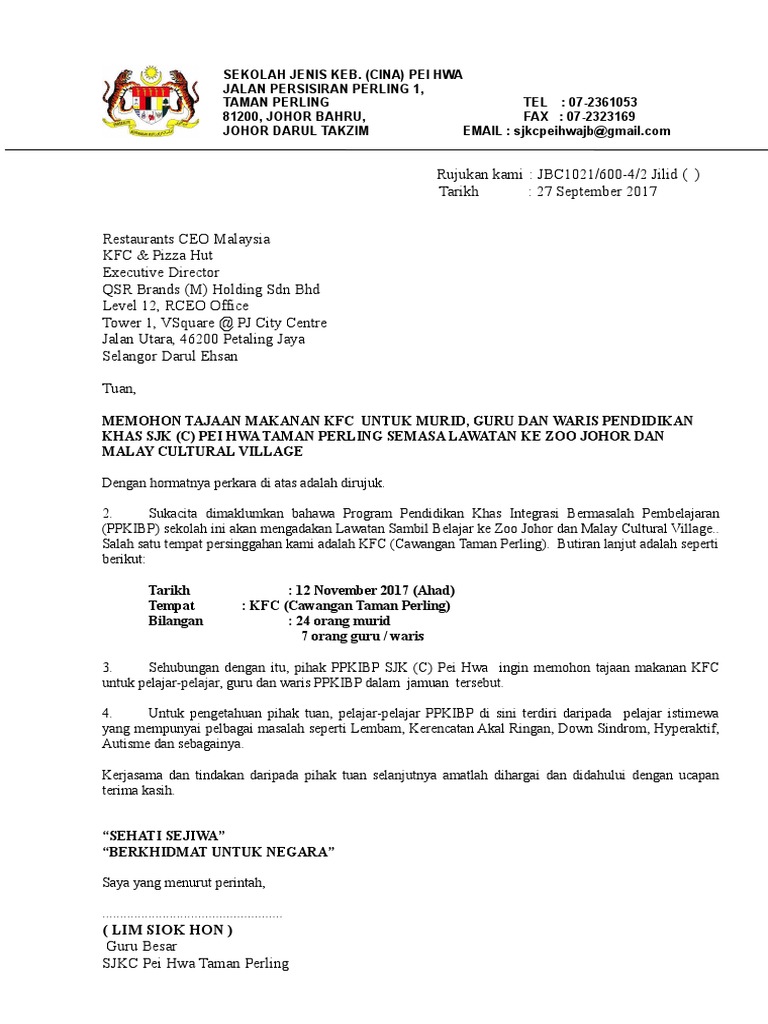 Surat Permohonan Sumbangan Kfc Doc