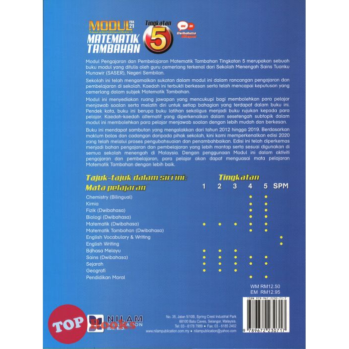 Topbooks Nilam Modul Pak 21 Matematik Tambahan Dwibahasa Kbsm Tingkatan 5 Lazada