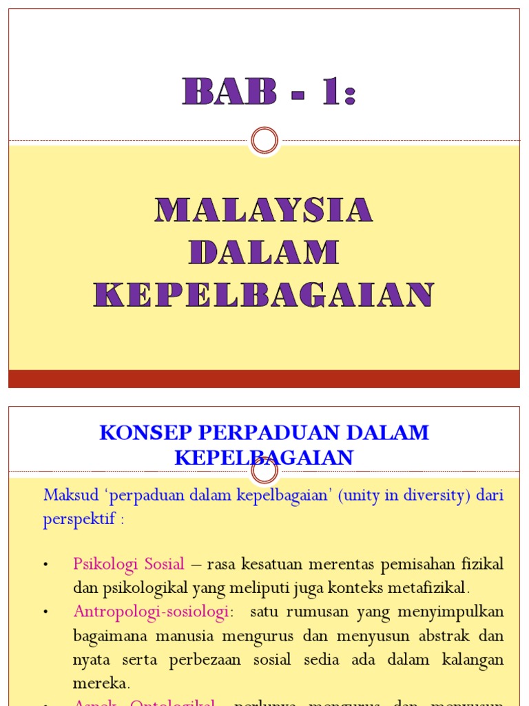 Bab 1 Malaysia Dalam Kepelbagaian6sept12 Hasil Pembelajaran Menjelaskan Konsep Perpaduan Dalam Kepelbagaian Menjelaskan Konsep Kesepaduan Sosial Course Hero