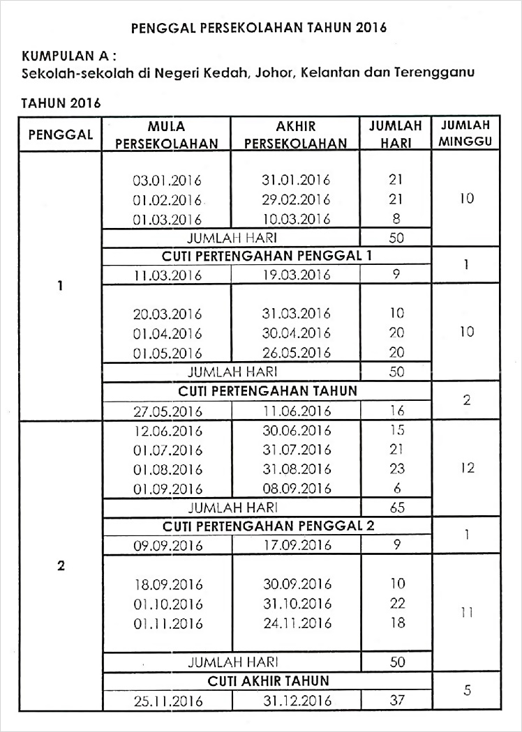 Segalanya Bermula Disini Cuti Sekolah 2016 Kalendar Takwim Penggal Persekolahan