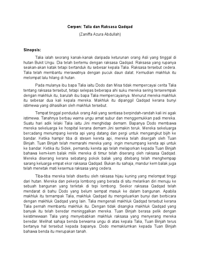 Cerpen Talia Dan Raksasa Qadqad Pdf Document