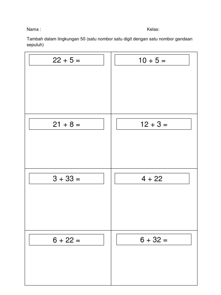 Lembaran Kerja Matematik Tambah Mengikut Aras Pdf Document