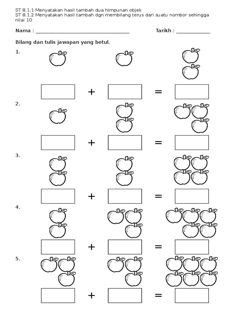 Nombor Lembaran Kerja Matematik Prasekolah Operasi Tambah