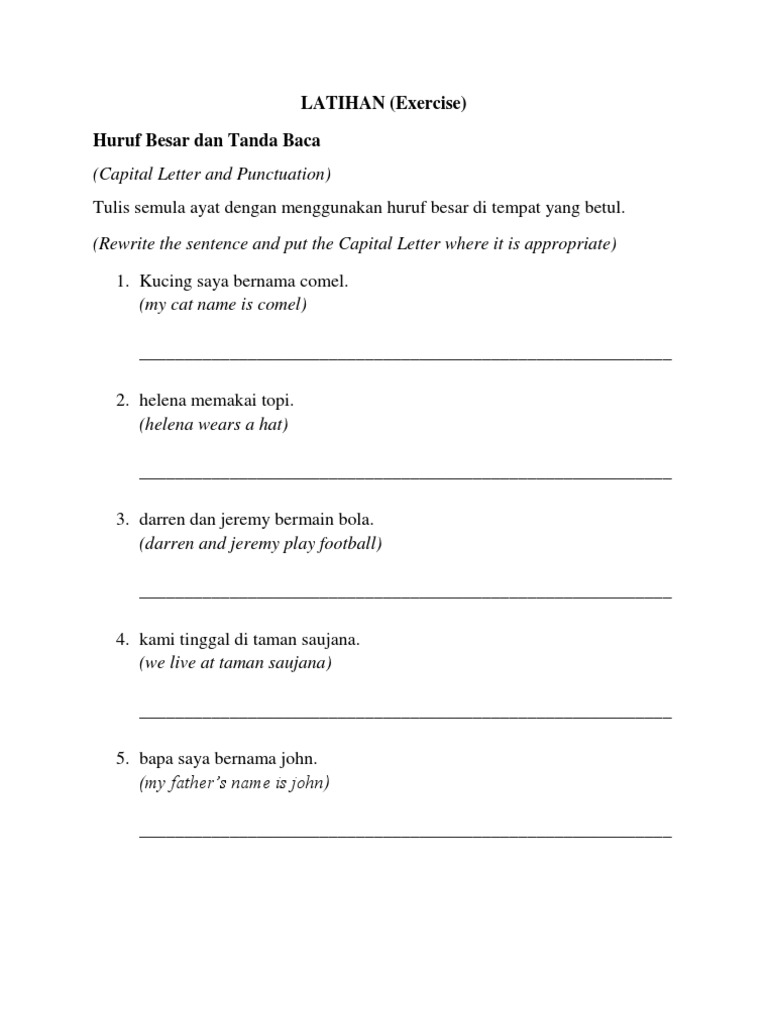 Doc Bm Tahun 4 Tanda Baca Latihan 1 Salinkan Semula Ayat Dengan Meletakkan Tanda Baca Yang Betul 20 Nik Roslina Nik Hasan Academia Edu
