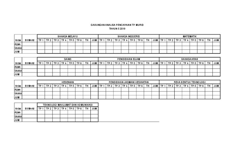 Himpunan Templat Pelaporan Pentaksiran Bilik Darjah Pbd Tahun 1