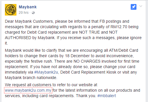 Kena Cas Rm12 70 Jika Tidak Tukar Kad Atm Lama Kepada Mydebit Adalah Tidak Benar Maybank Islam Itu Indah