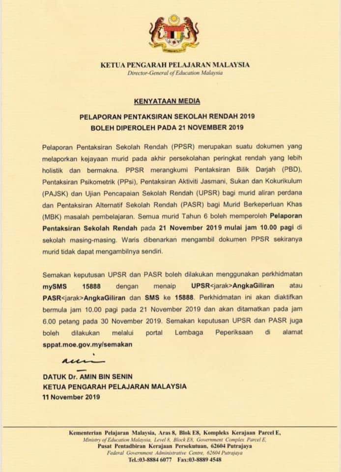 Semakan Keputusan Upsr 2017 Online Dan Sms