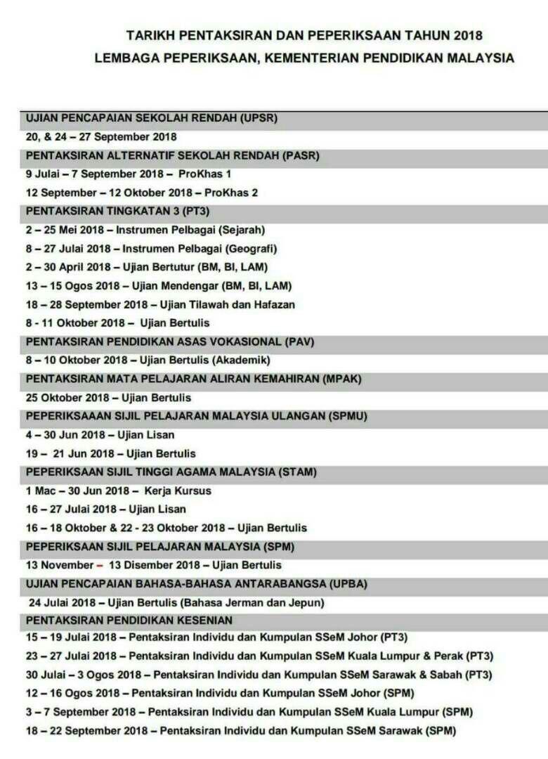 Tarikh Peperiksaan 2019 Upsr Pt3 Spm Stam Spmu Svm Layanlah Berita Terkini Tips Berguna Maklumat