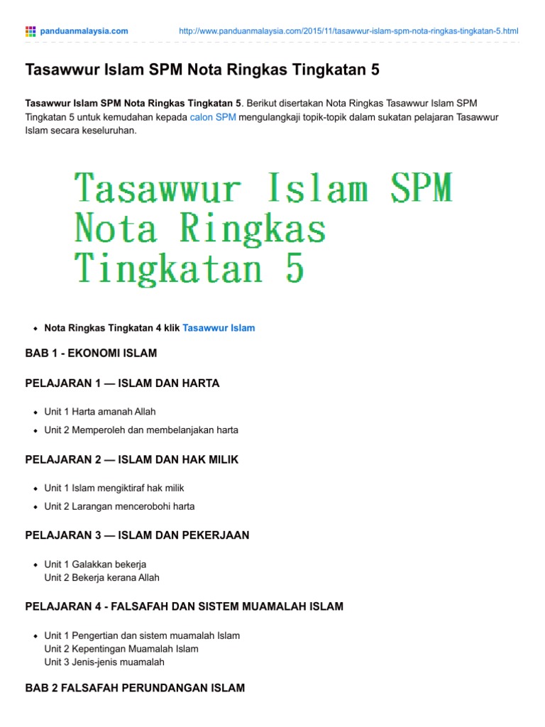Tasawwur Islam Spm Nota Ringkas Tingkatan 5