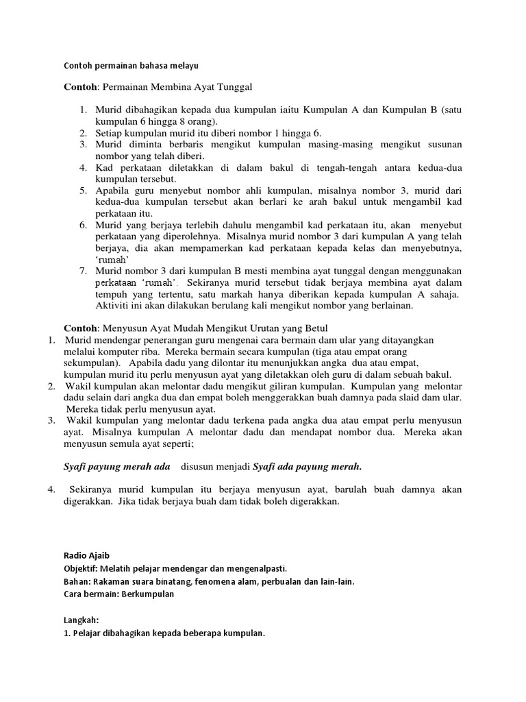 Contoh Permainan Bahasa Docx Contoh Contoh Permainan Bahasa Radio Ajaib Objektif Melatih Pelajar Mendengar Dan Mengenalpasti Bahan Rakaman Suara Course Hero