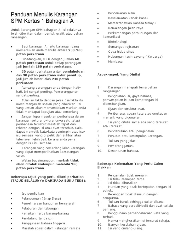 Panduan Menulis Karangan Spm Kertas 1 Bahagian A