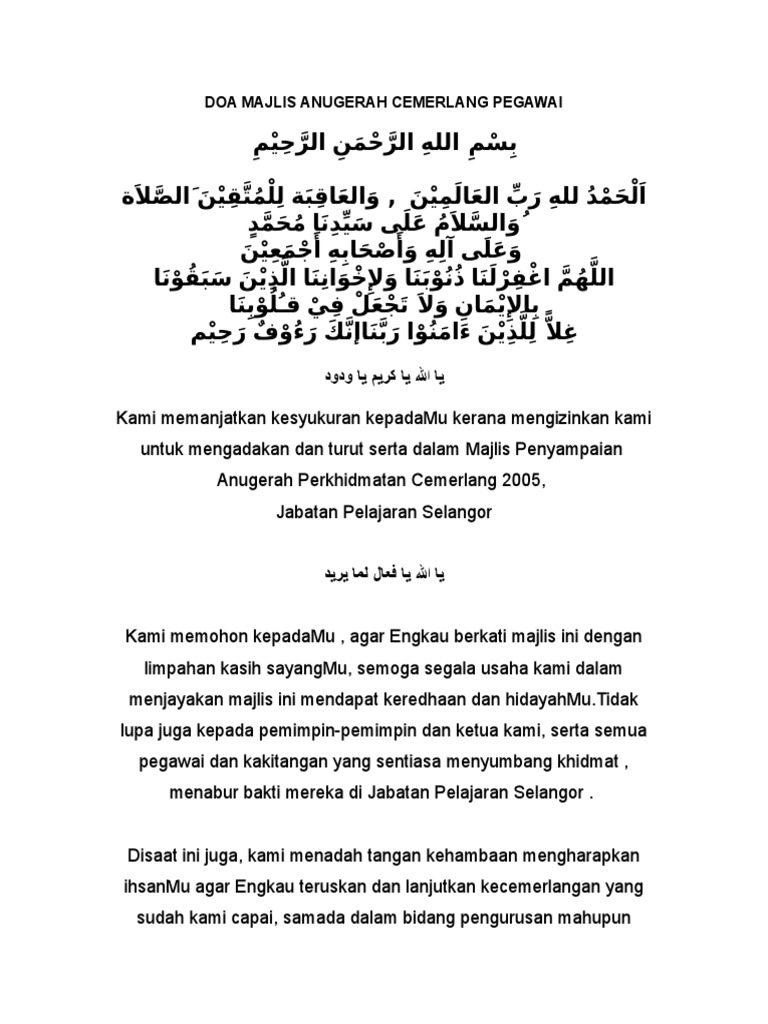 Doa Anugerah Perkhidmatan Cemerlang Pdf Document